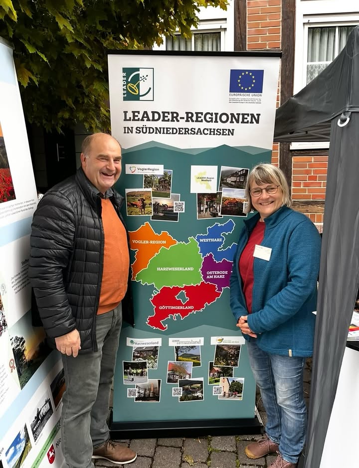 mehrTag der LEADER-Regionen in Südniedersachsen 2025 in Dassel:Der "Tag der Regionen" macht Werbung für die Stärken der Region und findet bundesweit über mehrere Wochen von September bis Oktober statt. Überall in der Dasseler Innenstadt war ein buntes und vielfältiges Programm mit Verkaufs- und Infoständen sowie regionalen Köstlichkeiten zu entdecken! Ein starker Auftritt unserer Region in einer eindrucksvollen Kulisse! Herzlichen Dank an alle Mitwirkenden!